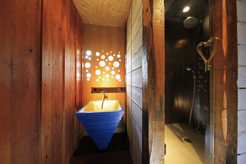 打合せ室、キッチン、シャワー室、トイレ、リラックスルーム、談話室どの部屋にも珍しい材料及び工法を取入れデザインしております。